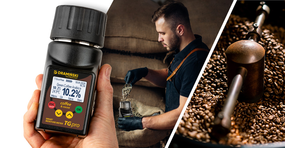 A device for measuring the humidity of coffee and cocoa beans directly in large bags. HMM&G is a modern moisture meter that allows easy monitoring of the humidity level and temperature of stored beans. Recommended for plantation owners, importers and exporters of coffee and cocoa.