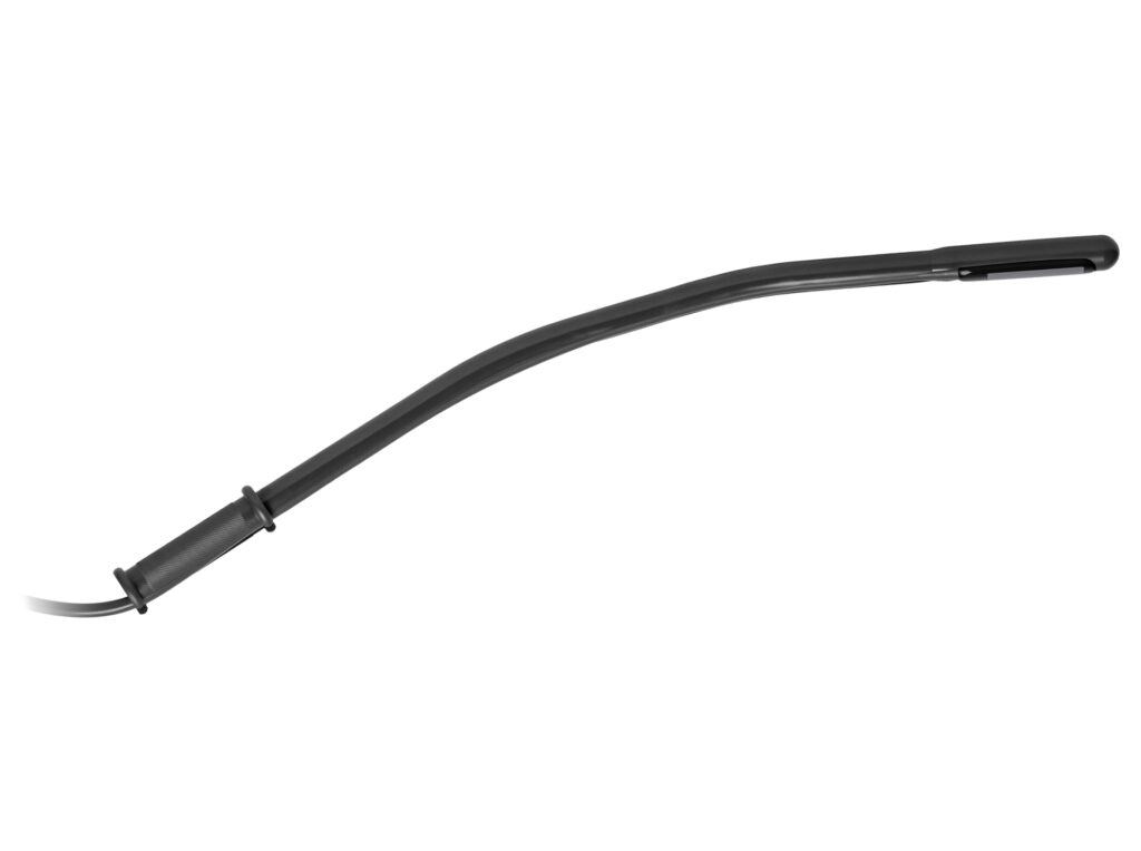 Extension for rectal examination of cattle. Compatible with the rectal linear probe 163. Allows to relieve the arm during examination.