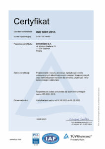- ISO 9001 – granted for the design, production, sales, and service of electronic devices for agriculture, the agro-food industry, and veterinary medicine (including ultrasound devices)